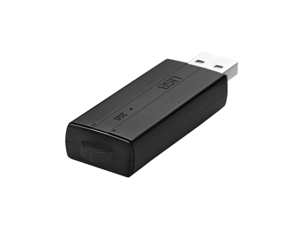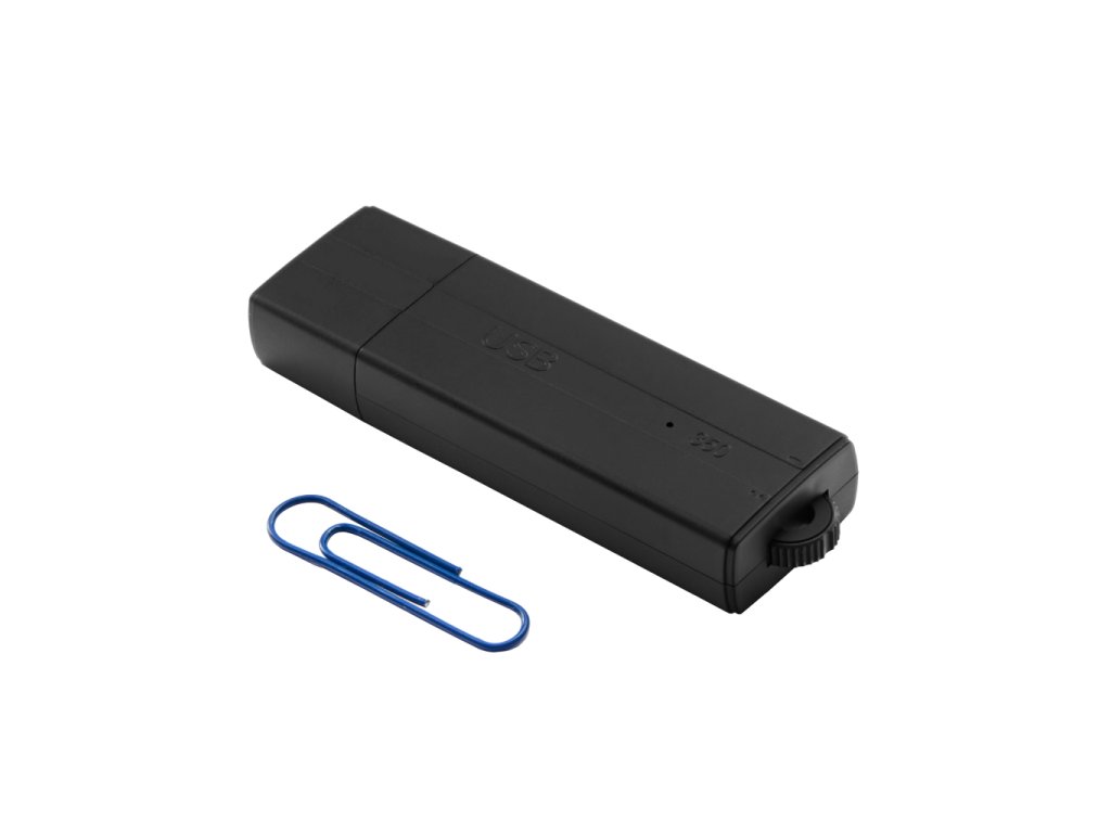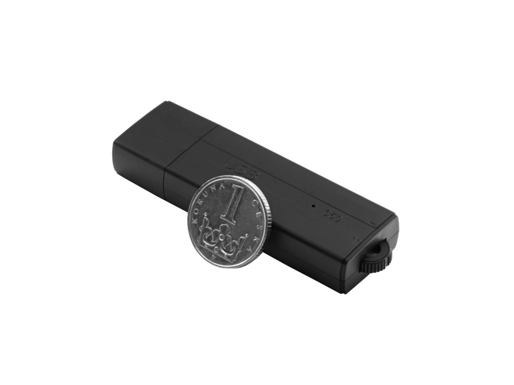 Diskrétní nahrávací odposlech ve flashdisku, nová verze s rychlejším nabíjením a vyšší kapacitou, vyroben v Koreji, výdrž nepřetržitě až 35 hodin, pohotovost až 25 dní, 5 úrovňová hlasová aktivace SUPER V.O.R., kapacita 64 GB (až 2304 hod.), datum a čas, rozměry 68x20x11 mm, váha 14 g