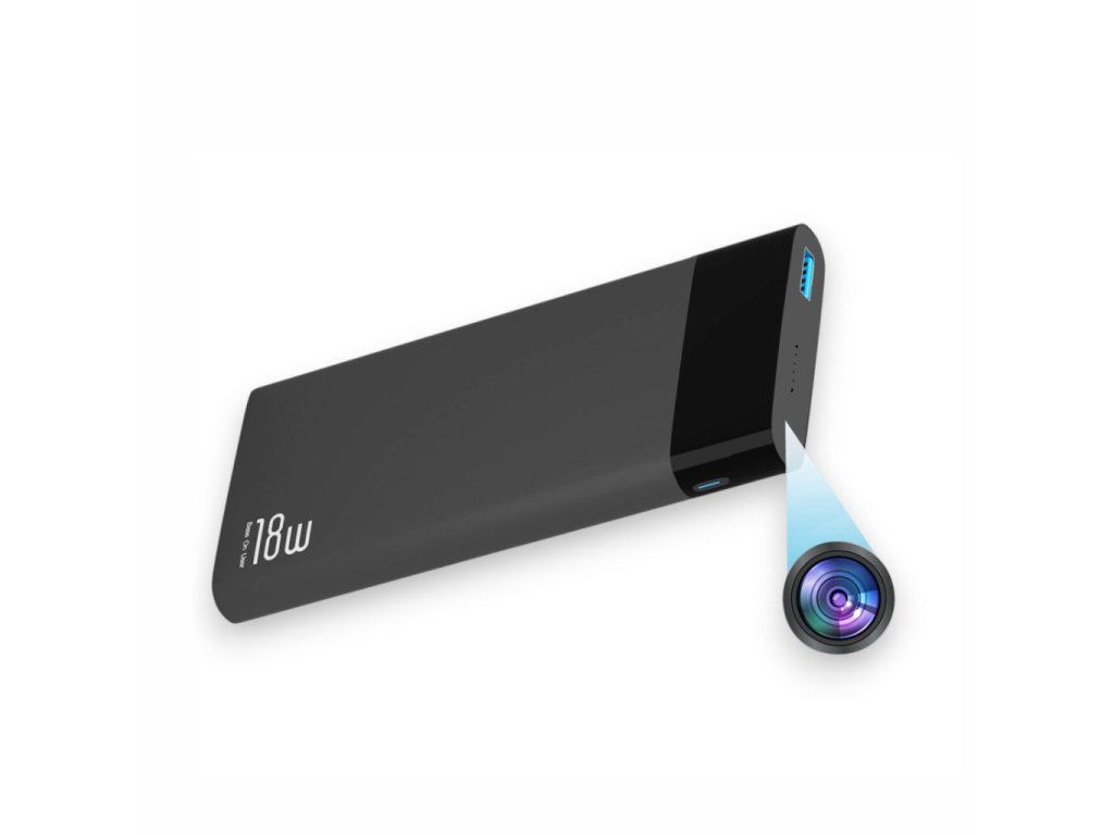 Prémiová WiFi skrytá kamera ve funkční powerbance, aplikace IOT Living, baterie 10000 mAh pro až 29 hod. provozu, rychlonabíjení 18W, konektor USB-C, obraz Full HD obraz, úhel záběru 120°, noční přísvit až 15 m, detekce pohybu, microSD až 128 GB