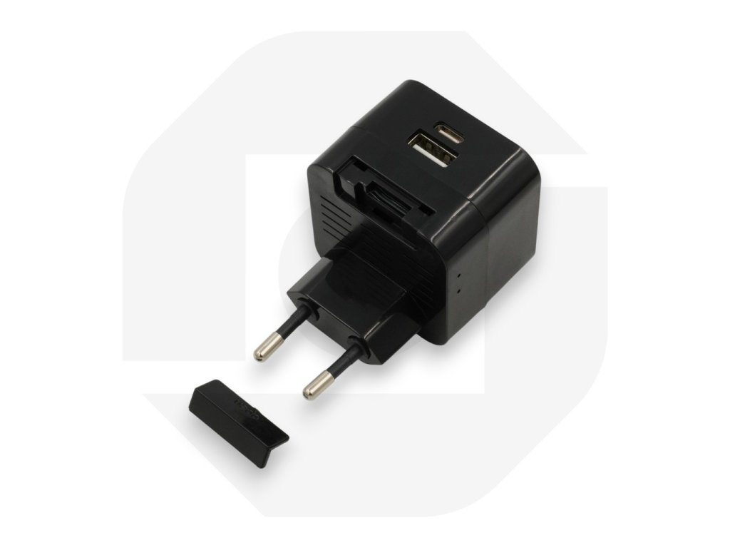 Nenápadná HD kamera důmyslně ukrytá v plně funkčním síťovém adaptéru zajišťuje maximální diskrétnost při monitorování prostoru. Díky trvalému napájení přímo ze zásuvky odpadá jakákoli starost o výměnu či dobíjení baterií. Adaptér navíc slouží i jako klasická nabíječka – je vybaven USB-A i USB-C portem pro napájení další elektroniky.